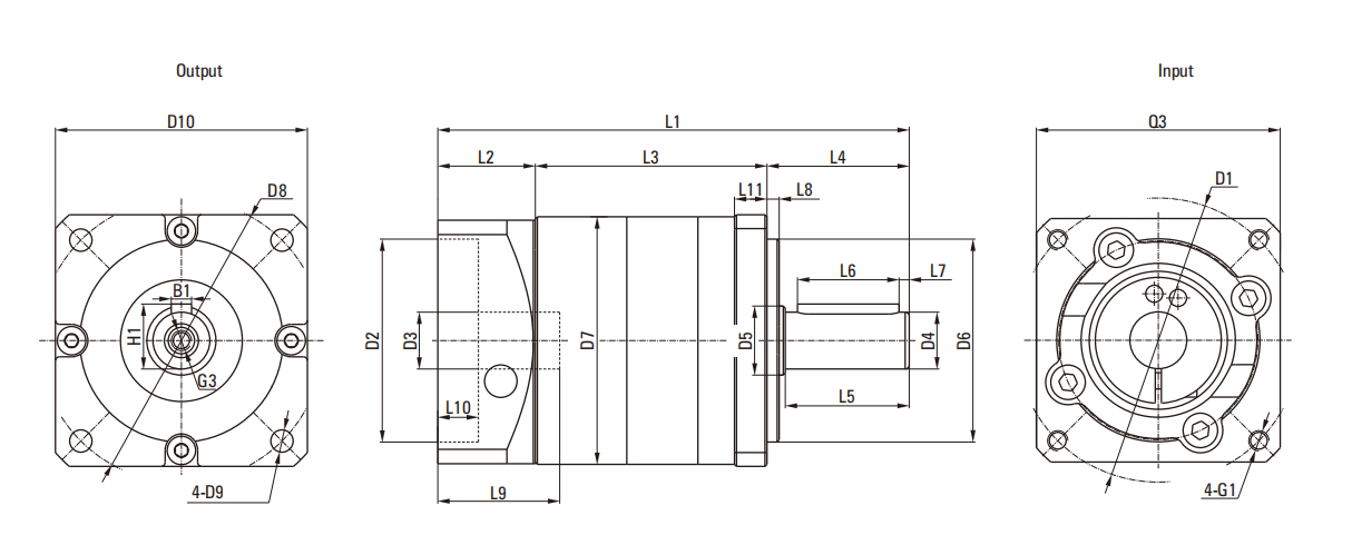 | D3 input shaft diameter | ≤φ24G7 | ≤φ35G7 | ≤φ42G7 | |||