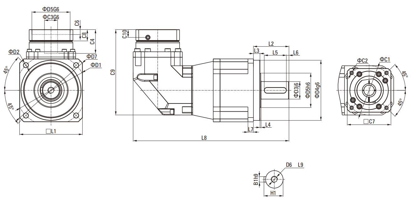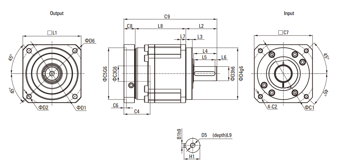 | D4output shaft diameter | φ14h7 | φ20h7 | φ25h7 | φ40H7 | ||||