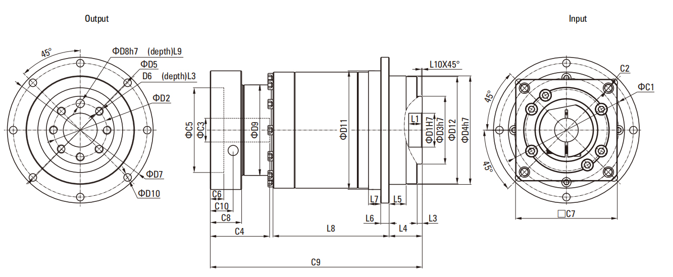| D4 output shaft diameter | φ32h7 | φ40h7 | φ55h7 | |||